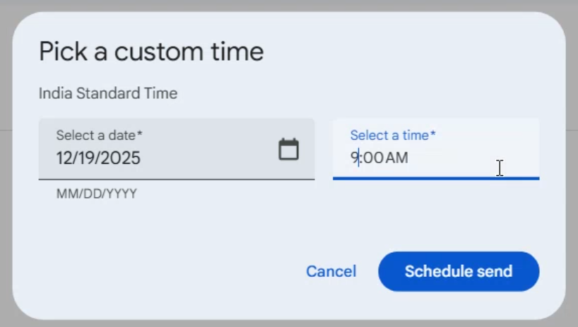 Voit myös valita 'Valitse mukautettu aikaja valitse tarkalleen, milloin haluat viestin lähetettävän.