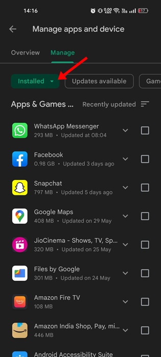 - NapauttaasuodattaaKuvake sovellukseni vieressä ja valitseNäytä asennetut sovellukset.