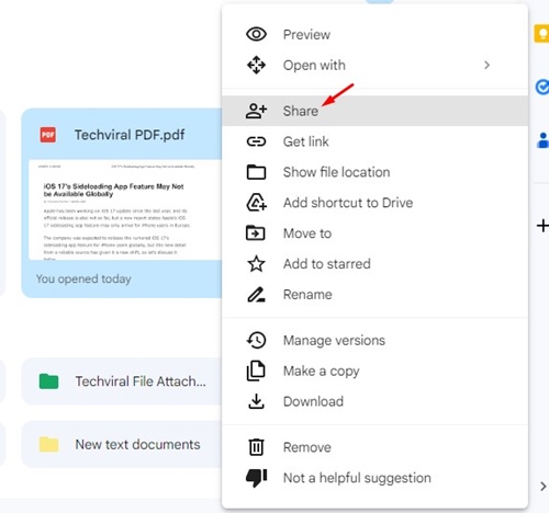 2. Napsauta hiiren kakkospainikkeella tiedostoa, jonka haluat tarkistaa ja valitaJakaa.