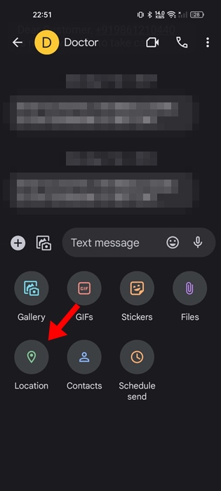 Android -google -viestien sovellus tukee RCS -viestintää; Siksi voit lähettää useita multimedia, yhteystiedot, tiedostot, sijainti ja paljon muuta. Näin voit jakaa sijainti tekstiviestien kautta.