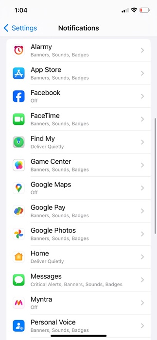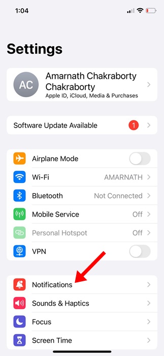 2. Kun asetukset -sovellus avautuu, napautaIlmoitukset.
