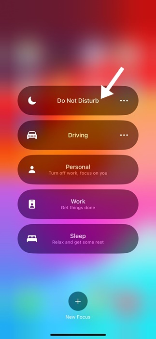 3. Valitse käytettävissä olevassa tarkennustilassaEi saa häiritä.