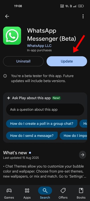 1.Päivitä WhatsApp -sovellusGoogle Play -kaupasta.