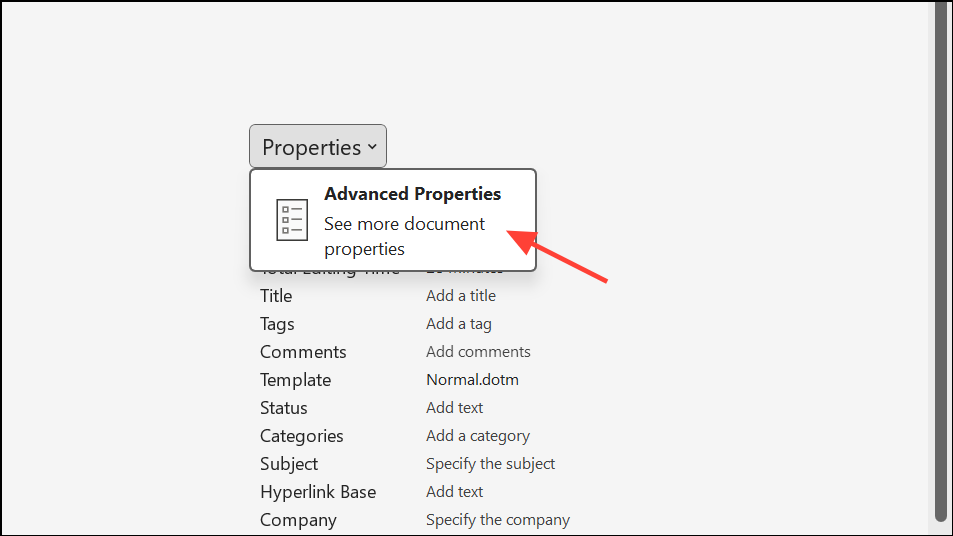 Word ei salli käyttäjien lisätä mukautettuja ominaisuuksia suoraan asiakirjan ominaisuuksien pikaosat avattavaan valikkoon; Siellä ilmestyy vain sisäänrakennetut ominaisuudet tai SharePoint- tai Advanced XML-kartoituksen kautta lisätyt. Mukautettuja asiakirjojen ominaisuuksia ja kartoitettuja sisällönhallintaa voidaan käyttää kentinä tai rakennuspalikoina, mutta niiden hallinta ja uudelleenkäyttö voivat vaatia edistyneempiä asennus- tai mallipohjaisia työnkulkuja. Jos joudut jakamaan malleja mukautetuilla kartoitetuilla säätimillä, varmista, että kaikilla käyttäjillä on pääsy mallitiedostoon, koska kartoitetut säätimet ovat sidoksissa asiakirjan XML -rakenteeseen.