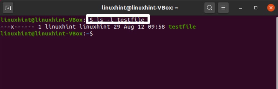 Omistajan käyttöoikeuksien luettelossa merkintä "x”Osoittaa, että tiedoston omistajalla on nyt lupa suorittaa tiedosto: