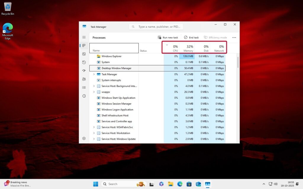 Kun taas toisessa käyttökuvakaappauksessa suorittimen käyttö on lähes 0, ja näin jopa 2-3% vain 32% (8 Gt) RAM-muistilla koko järjestelmälle, koska en keksinyt sille mitään erityistä taustaprosessia.