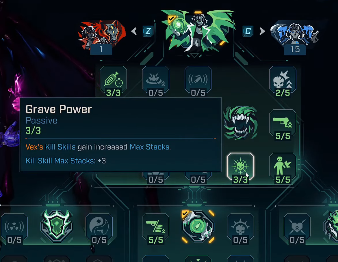 - Monet tappavat taidot, etenkin uudelle hahmolle Vexille, voivat pinota ja olla vuorovaikutuksessa minion -kuolemien kanssa, ei vain suorat tappaa.
