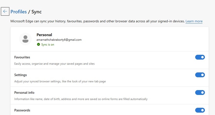 Tämä johtuu siitä, että kun synkronointi on päällä, Microsoft Edge muistaa valintasi ja tekee samat asetukset saatavana kaikissa sen muunnelmissa.
