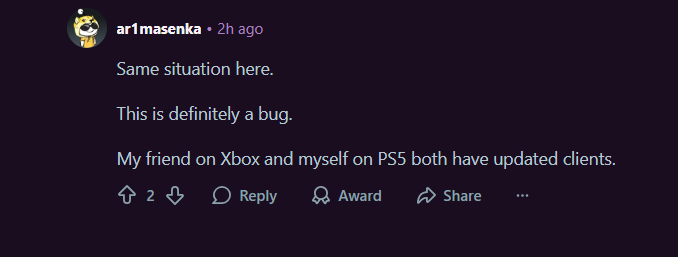 - Xbox-pelaajat ovat ilmoittaneet viivästyksistä päivitysten vastaanottamisessa PC:hen ja PS5:een verrattuna, mikä aiheuttaa ristiintoistoongelmia.