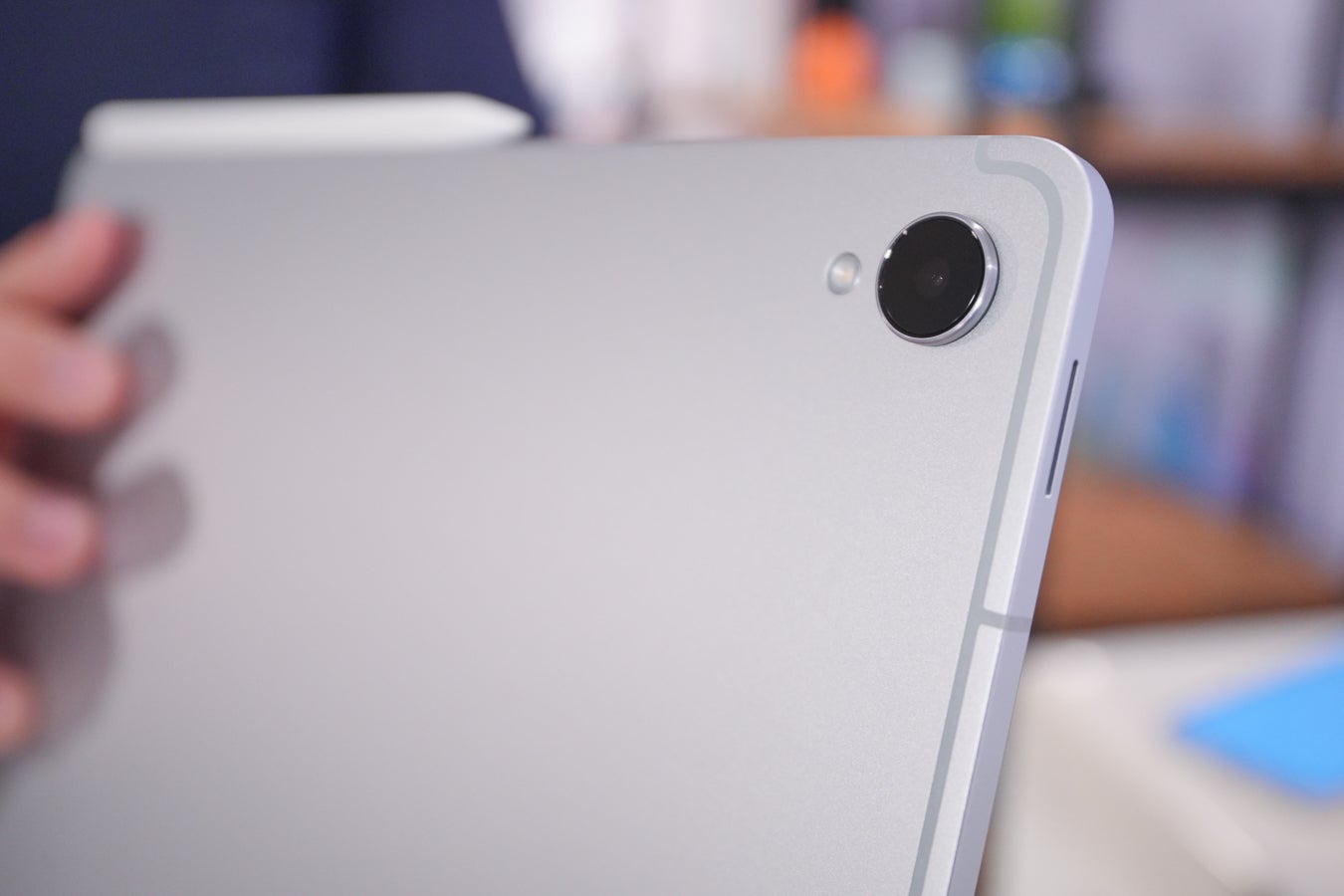 Kamerat eivät ole tabletin kohta, mutta niillä on silti merkitystä puheluille ja aina kun tarvitset nopean napsautuksen jostakin. Edessä meillä on 12 MP: n ultraktaatti videokokouksiin, joissa on puhtaat ihoäänet ja luotettava automaattinen altistuminen. Laajempi näkökenttä pitää sinut keskittyneenä, vaikka tupisit tablettia parittomiin kulmiin.
