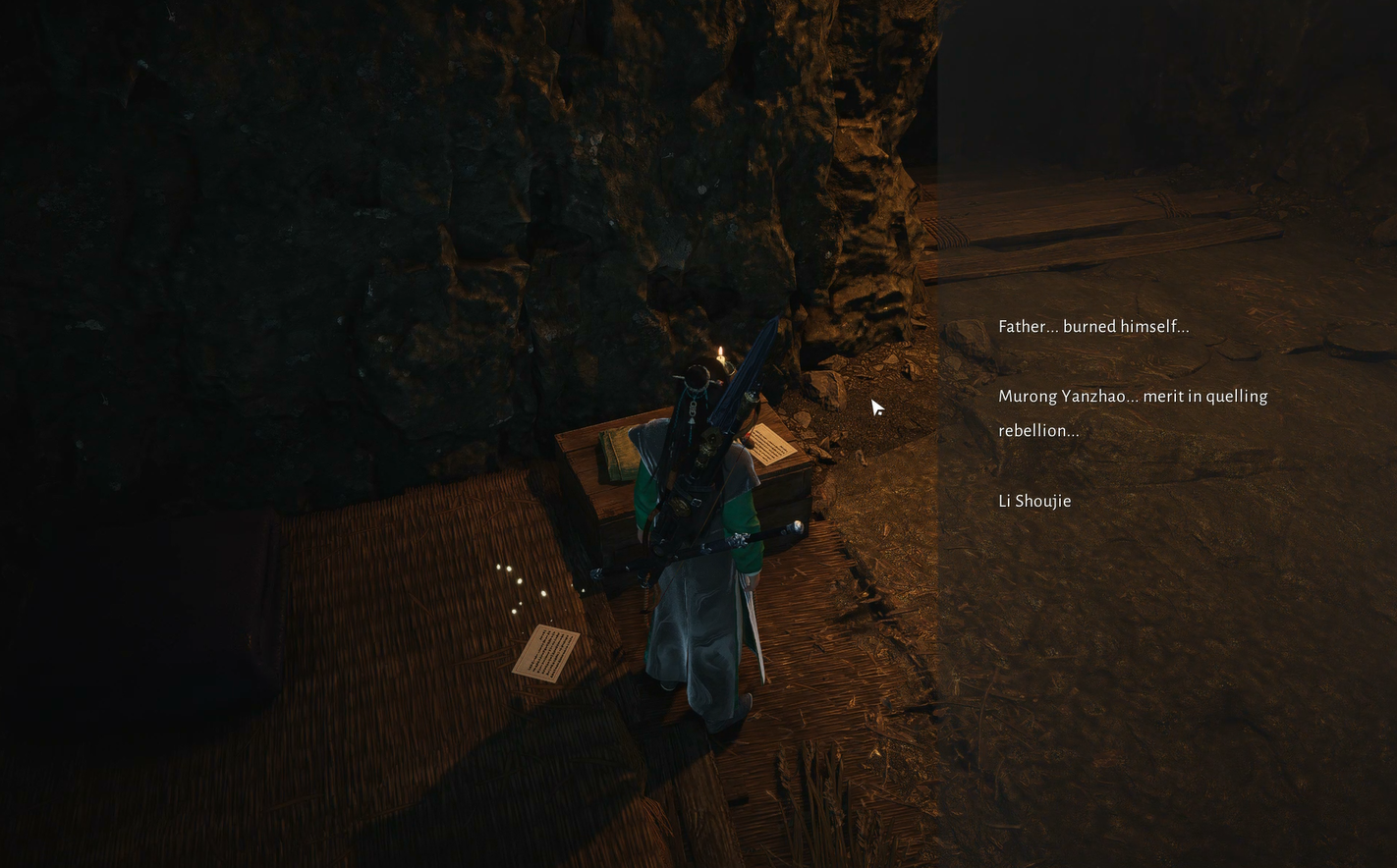 Järkyttynyt Zhenzhen pakenee. Seuraa ja puhu hänelle. Hän paljastaa Murong Yuanin pehmeämmän puolen ja kehottaa sinua tutkimaan, kuka Murong todella on. Hän ehdottaa puhumista paikallisten kanssa ja mainitsee nähneensä Murongin lähellä kylän ulkopuolella olevaa roskakasaa, paikkaa, jonka hän uskoo kätkevän Murongin salaisen tukikohdan.