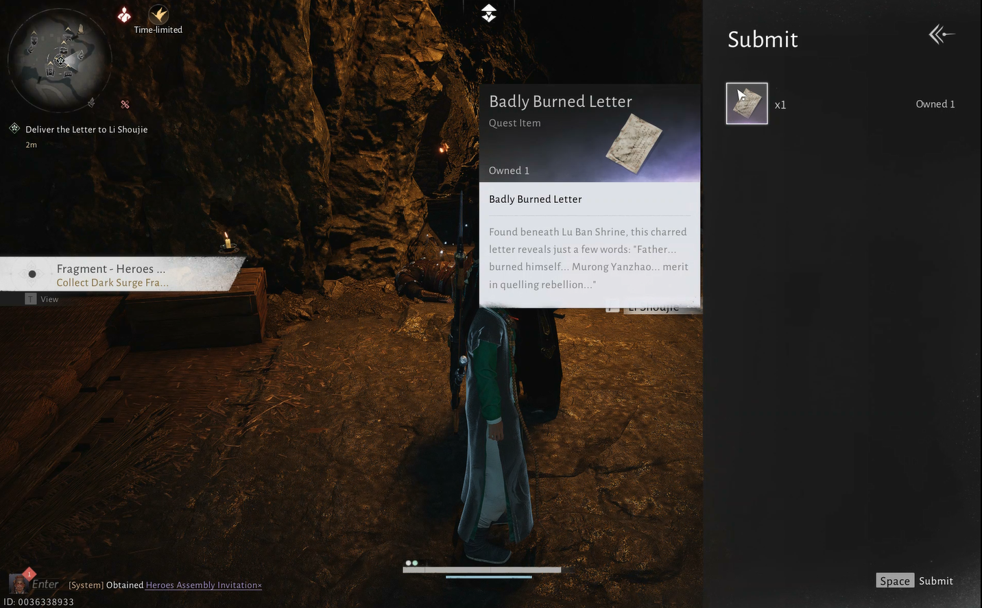 Kun olet ottanut kirjeen, katso ympärillesi. Näet hetkeksi ohikiitävän kuvan Murong Yuanista.