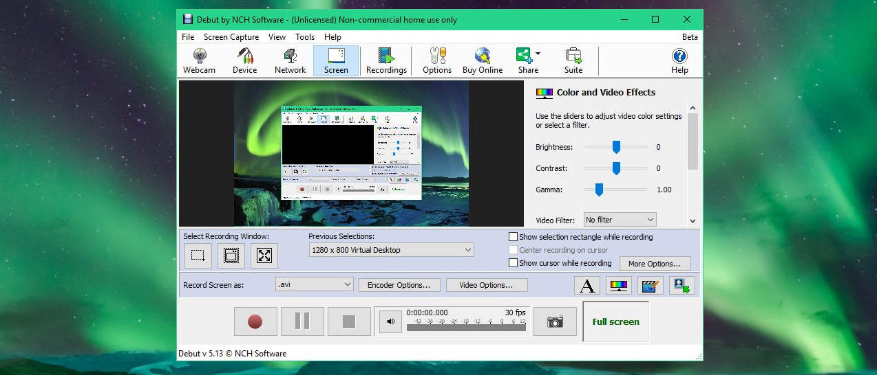 Viimeinen luettelossa oleva näyttörekisteröinti on debyyttivideoiden sieppaus. Se on melko tehokas ohjelma, johon voit käydä, jos haluat tallentaa näytön. Voit tallentaa näyttömateriaalia sekä ulkoisista laitteista, mukaan lukien verkkokamerat ja tietoturvakamerat. Aikarajaa ei ole, ja vesileima, joka on sijoitettu videon nauhoittaessa.
